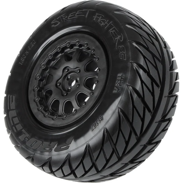 Pneus Pro-line Street Fighter 2.2″/3.0″ Short Course, pour modèles de voitures RC 1:10. Dimensions ?106x46mm. Mélange M2 (moyen). Insert Closed Cell.