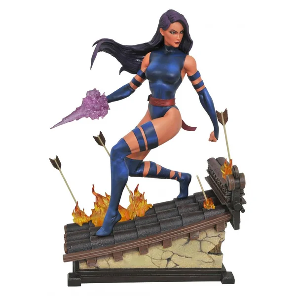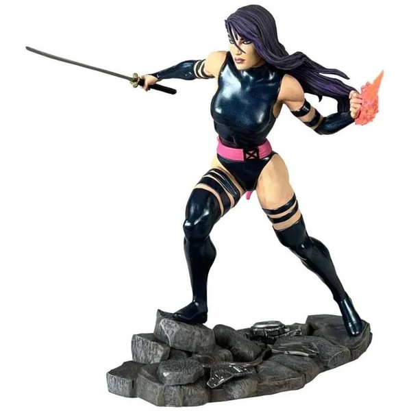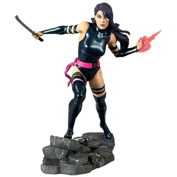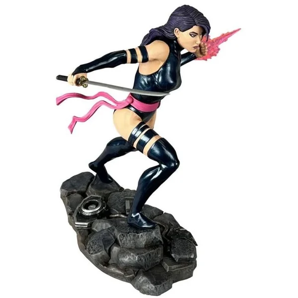 Psylocke, alias Elisabeth Braddock, est une jolie mutante qui traverse l’univers Marvel et les films des X-Men. En effet, la jeune femme est reconnaissable, comme sa statuette le montre, à sa chevelure noire et violette. Mais aussi à son costume noire, façon ninja. Idéal pour cette super-héroïne, qui a tous les talents en ce qui concerne les arts martiaux.