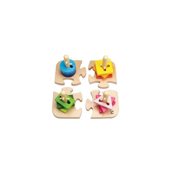 Les formes cannelées et les tiges à boutons ajoutent une dimension supplémentaire à ce puzzle très coloré.