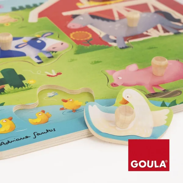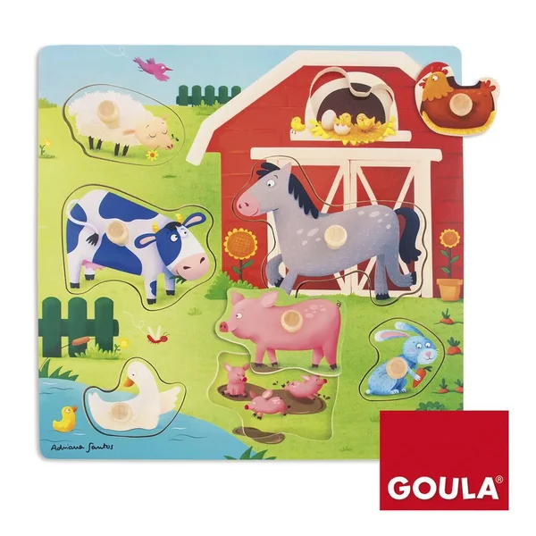 L’enfant reconnait les mamans et leurs bébés grâce à ce puzzle de 7 pièces en bois sur le thème des animaux de la ferme.