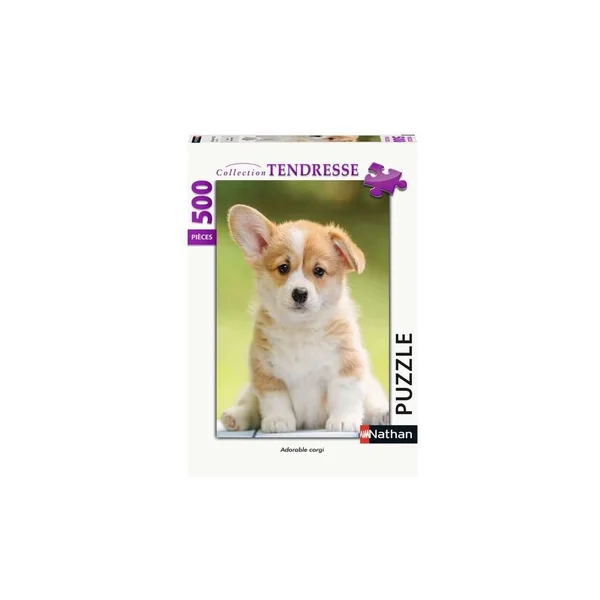 Tombez sous le charme de ce puzzle Nathan “Adorable Corgi” de 500 pièces. La photo réaliste met en scène un chiot corgi attendrissant, parfait pour un moment de détente et de câlins visuels.