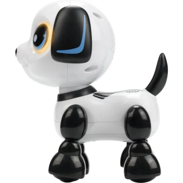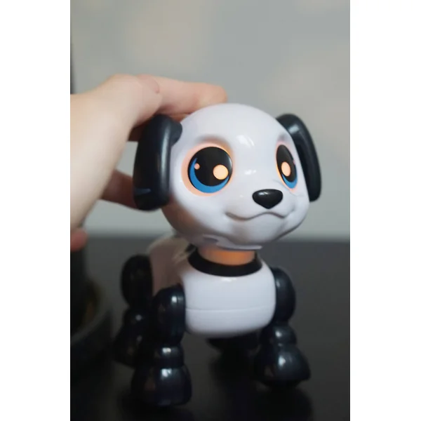 Le contrôle est simple et amusant. Si tu appuies sur la tête du chien, il avancera, mais si tu soulèves la tête, le chien reculera. Ce mignon chien noir et blanc a de jolis yeux de chiot qui brillent et émet des sons adorables en se déplaçant. Il s’adapte parfaitement aux petites mains d’enfants et est recommandé pour les enfants à partir de 3 ans.