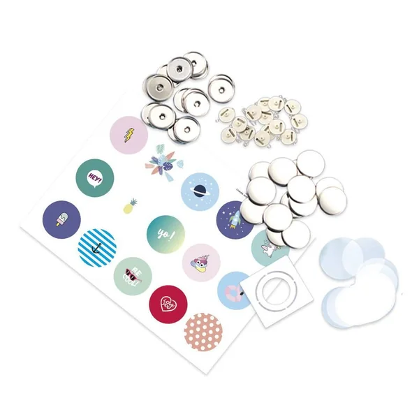 Un besoin supplémentaire de badger ? Comme une envie de faire des badges à la pointe de la mode ? Aucun soucis, cette recharge permet de créer 15 badges tendances et délirants !