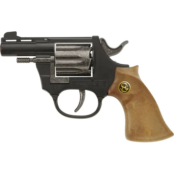 Pistolet en métal – Super 8 – 8 coups : 14.5 cm Un pistolet en métal pour jouer aux Cow-Boys et aux Indiens ou pour impressionner vos copains ! Avec ou sans pétards, c’est le pistolet qu’il vous manquait… Pistolet en métal – Crosse en plastique. A partir de 3 ans – Sans pétards. A partir de 7 ans – Avec pétards. Poids : 160 g.