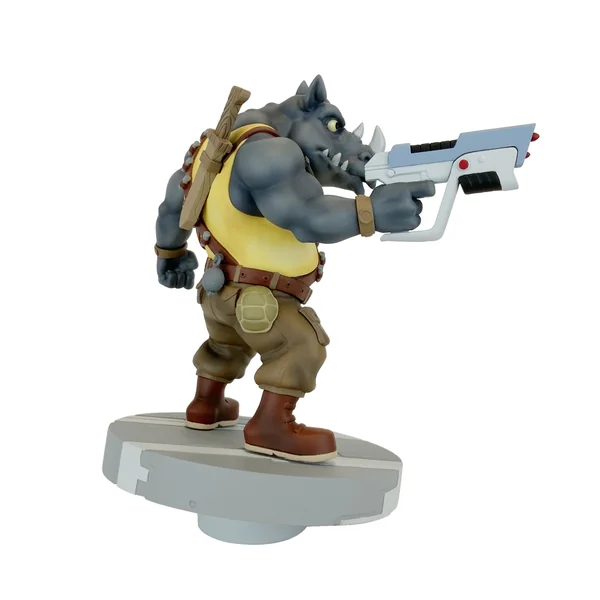 Que serait l’univers des tortues Ninja sans ses vilains … et notamment, dans le clan Foot, les inséparables Rocksteady et Bebop. Et ici PCS collectible propose une version incroyable et très Pop culture du mutant phacochère. Avec son marcel un peu trop court, son petit ventre rond, son air cruel…il est incroyablement bien réalisé.