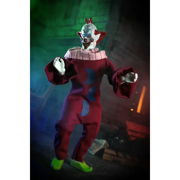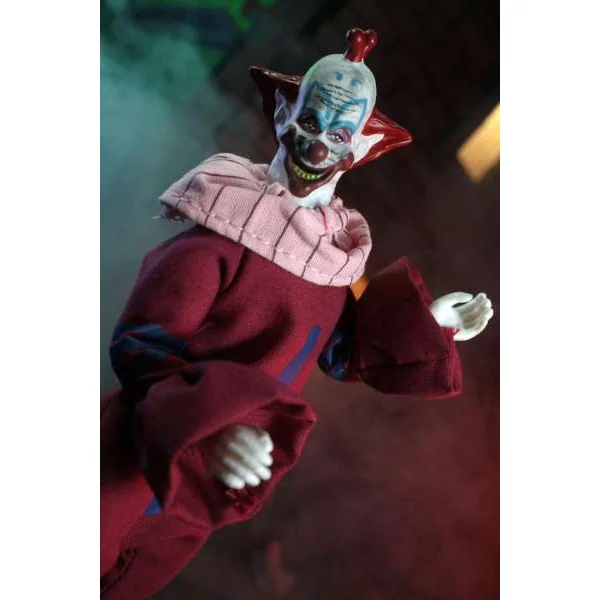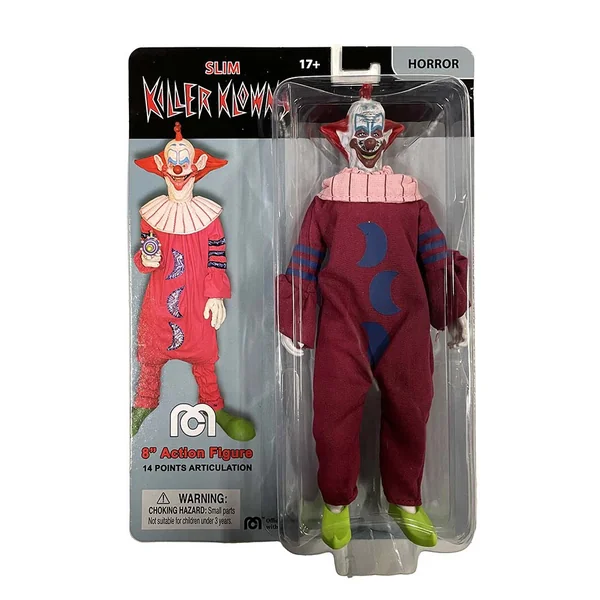 Préparez-vous à un cauchemar sous chapiteau ! Slim, le plus effrayant des Clowns Tueurs venus d’Ailleurs, débarque en figurine Mego de 20 cm. Son sourire carnassier, ses yeux démoniaques, son costume coloré… Tout semble festif, jusqu’à ce qu’il sorte ses armes extraterrestres.