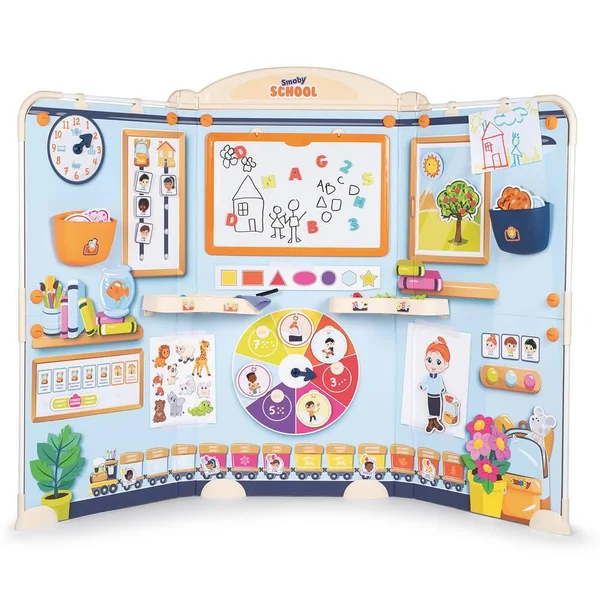 De nombreuses activités pour recréer l’univers de la maternelle. présents/absents, jours de la semaine, météo… 104 accessoires dont 1 tableau avec chiffres et lettres magnétiques.