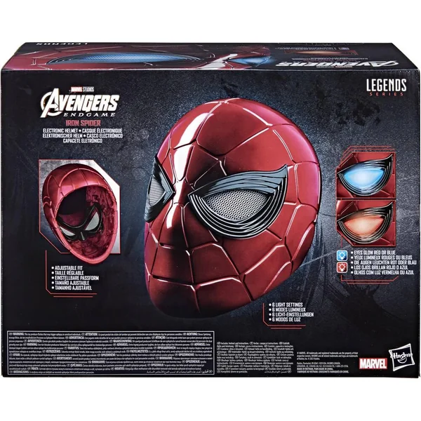 Ce casque jouet extraordinaire et de taille réelle est à découvrir parmi les jeux et jouets 14 ans du site JouéClub. C’est la réplique de l’armure Iron Spider du film Avengers Endgame. Il présente une hauteur de 25 cm et fonctionne avec 2 piles LR6 non fournies. Les 2 lumières LED illuminent les yeux. Ce casque de super-héros comporte 6 réglages différents. Les couleurs des lumières sont le rouge et le bleu.