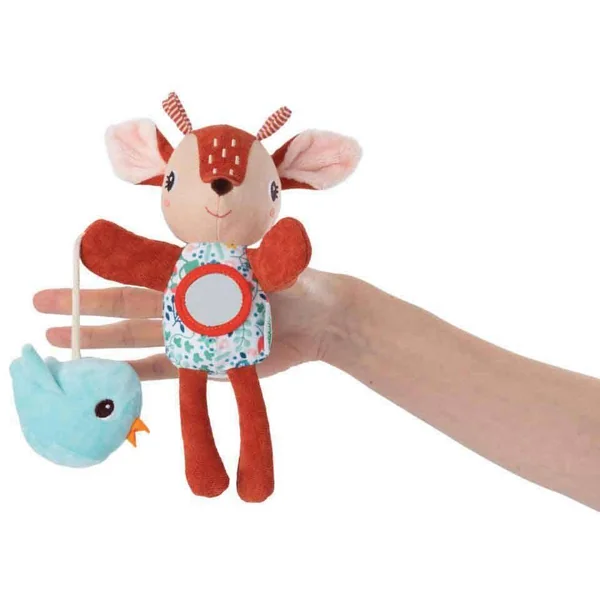 La petite marionnette souple de Stella le faon se glisse dans votre poche ou votre sac et prend vie comme par magie pour le plus grand plaisir des petits. Le petit oiseau crépitant et le miroir éveillent les sens des tous petits.