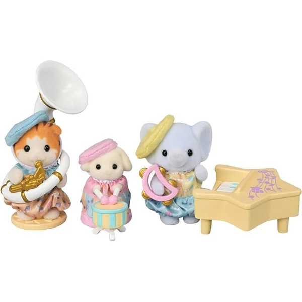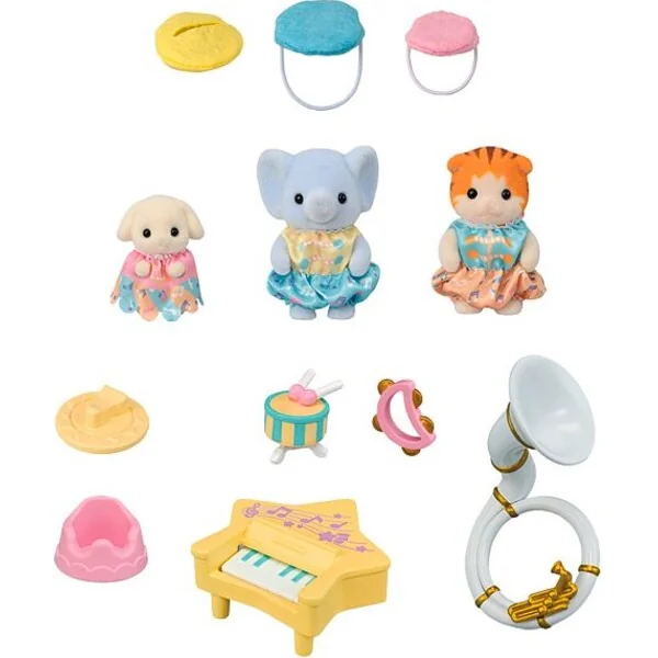 Le concert des bébés à la maternelle peut commencer. Cet ensemble comprend des figurines de adorables bébés Sylvanian Families et des accessoires sous forme d’instruments de musique. Le trio musical est composé du bébé chat Alfie, du bébé éléphant Hilton et du bébé lapin Rosemary.