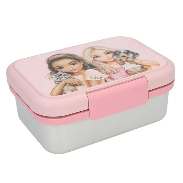 TOPModel Boîte à déjeuner en acier inoxydable roseCette boîte à goûter TOPModel en acier inoxydable est dotée d’un couvercle en plastique rose imprimé d’un mignon motif deux mannequins avec un chien et un chat. À l’intérieur, la boîte à goûter dispose d’un séparateur amovible. Faite d’une matière incassable et inodore et équipée d’un joint en silicone qui empêche les fuites et conserve la fraîcheur des aliments. Contenance : 1 l ; sans BPA, lavable au lave-vaisselle ; dimensions : 17,3 x 3,3 x 6,9 cm-