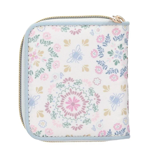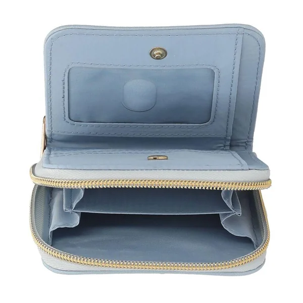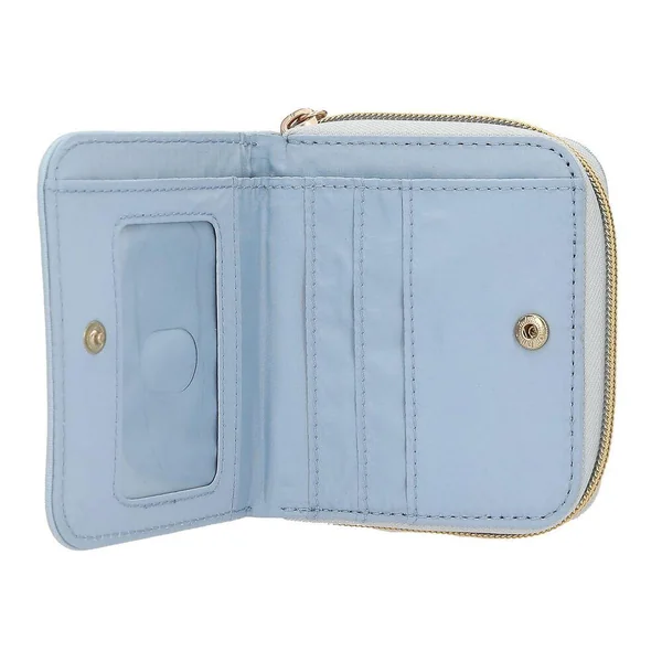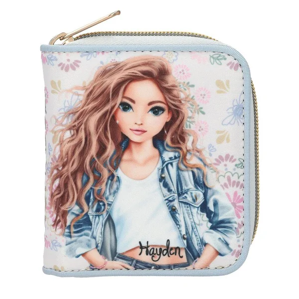 TOPModel Pochette FESTIVAL FUNÀ la fois ludique et décontracté : ce porte-monnaie bleu clair TOPModel avec un bouton-pression présente un motif mannequin stylé sur le devant et un mignon motif floral tout autour. Avec des compartiments pour les billets, les cartes et une carte nominative, ainsi qu’un compartiment à fermeture éclair pour la monnaie. Matière principale : 100 % polyester recyclé ; doublure 100 % polyester.