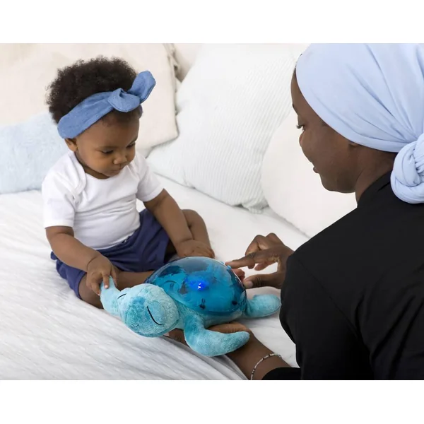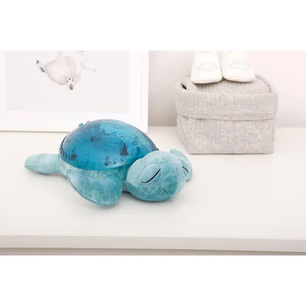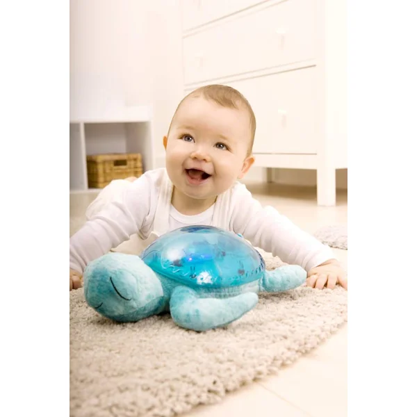 Cette jolie tortue diffuse une douce lumière et projette sur le plafond de la chambre les vagues de l’océan. La veilleuse Tranquil Turtle rassure bébé dès sa naissance mais aussi les enfants qui ont peur du noir. Douce peluche la journée, elle se transforme en veilleuse la nuit venue. Une mélodie marine et le son des vagues (bruit blanc) apaiseront bébé pour un sommeil relaxant. Plus en détails : – Effet de lumière sous-marine magique – Projection de vagues avec mouvement – Ajustement de la luminosité et du mouvement pour créer différents environnements. – 2 sons apaisants : mélodie sous-marine et vagues de l’océan ( bruit blanc) – 6 niveaux de volume réglables – Minuterie de 23 minutes qui assure l’obscurité complète pendant le sommeil profond de l’enfant, recommandé par les pédiatres.