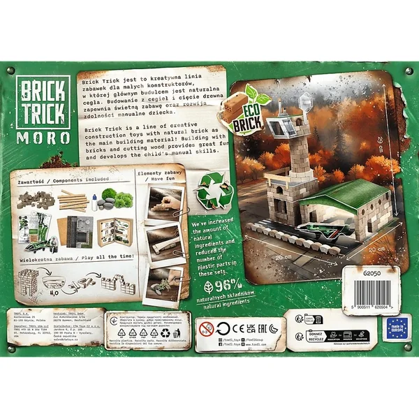 Brick Trick Moro est une série de kits de construction incroyables qui vous plongera dans un monde d’aventures militaires et de missions de sauvetage. Nous prenons soin de l’environnement, c’est pourquoi le kit de blocs en céramique pour la base militaire contient jusqu’à 96 % d’ingrédients naturels ! Les blocs EKO garantissent du plaisir !