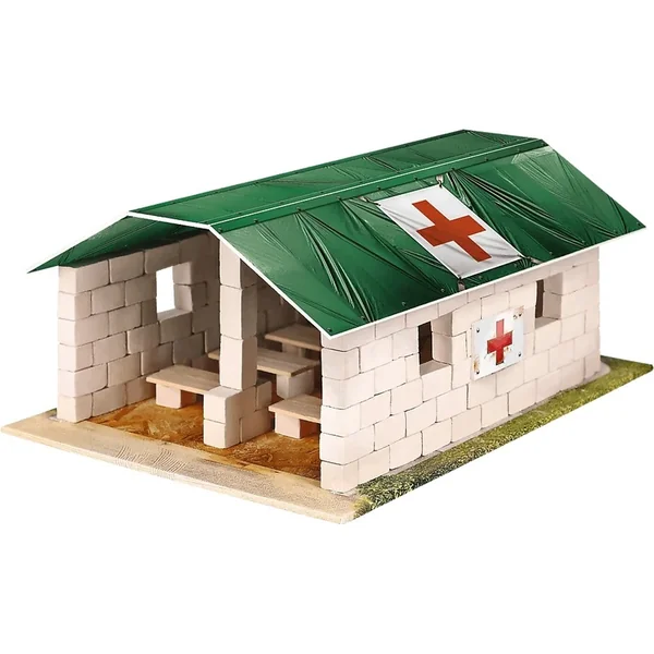 Incarnez le rôle d’un constructeur et construisez un hôpital de campagne militaire avec de véritables briques et planches en bois ! Utilisez des plans de construction prêts à l’emploi ou laissez libre cours à votre imagination et créez votre propre structure unique, puis ajoutez de la mousse naturelle, des pierres et des éléments en carton pour décorer les environs. Le plaisir ne s’arrête pas là ! La colle se dissout dans l’eau – dissoudre la structure et continuer à construire en réutilisant les mêmes briques !