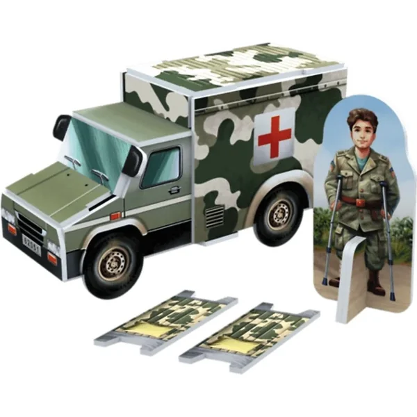 Utilisez les plans de construction fournis ou faites preuve d’imagination pour créer un hôpital unique, idéal pour les petits médecins et infirmières, avec un marquage distinctif et d’autres fonctionnalités, comme un véhicule militaire à assembler soi-même.