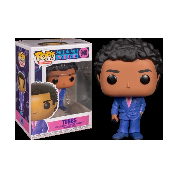 Costume bleu, assorti aux chaussures, voici Ricardo Tubbs tout droit sorti de la série tv culte des années 80 : Miami Vice ou Deux flics à Miami. En effet, le policier infiltré est impeccable, chevelure blonde ondoyante, et lunettes de soleil à la main. A collectionner avec son pote et collègue, Sonny Crockett.