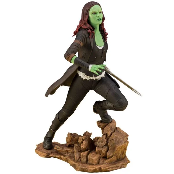 Cette figurine de Gamora est unique en son genre. En effet, l’apparence de la jeune femme est inspirée de son personnage dans la série télévisée What If, diffusée sur Disney +. Ici elle a une belle apparence de guerrière. Elle a donc revêtu une armure faite de pièces métalliques qui couvrent des parties de son corps. Et regardez sa grande épée, soulignant son rôle de combattante. Cette tenue diffère de ses tenues habituelles dans les films du MCU. En effet, généralement elle porte des vêtements plus ajustés et fonctionnels.