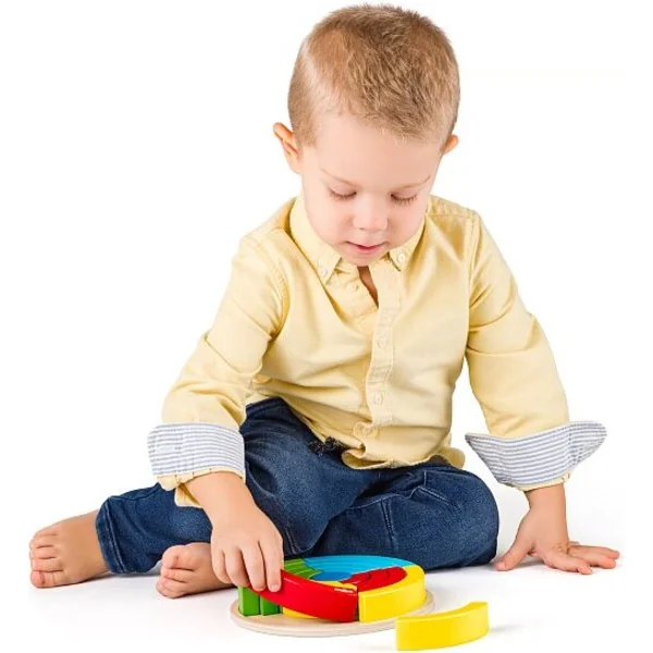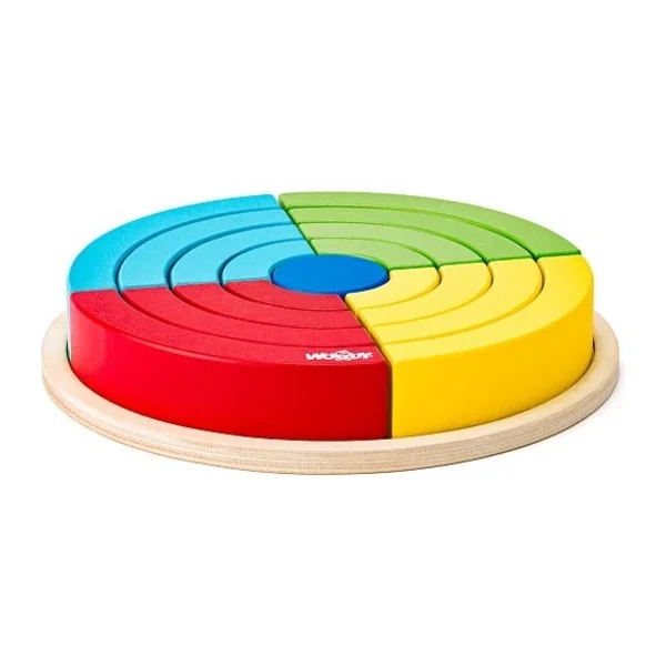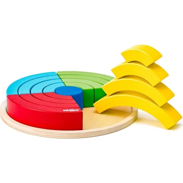- L’enfant assemble des parties en arc-en-ciel de la roue, qui sont ensuite assemblées du centre des plus petites aux plus grandes.