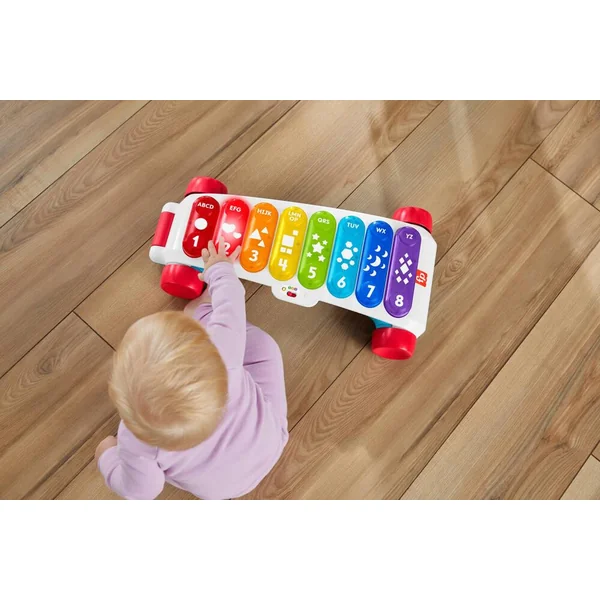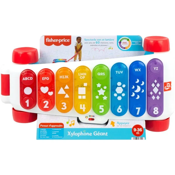 Avec le Xylophone Géant de Fisher-Price, jamais un instrument de musique factice à tirer n’aura atteint de tels niveaux de virtuosité ! Ce xylophone interactif extra-large est doté de 8 touches multicolores qui s’illuminent et activent plus de 60 chansons, sons et phrases au gré de l’inspiration de votre bébé. Sa poignée solide se replie pour permettre aux musiciens en herbe de jouer assis ou de le tirer avec eux. La technologie Éveil Progressif vous permet d’adapter le jouet à l’âge de bébé, avec 3 niveaux de phrases et de chansons éducatives qui lui enseignent l’alphabet, les chiffres, les formes et plus encore.