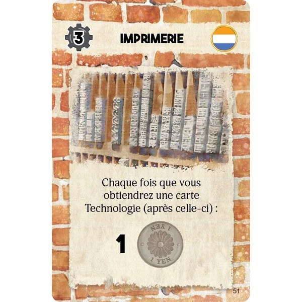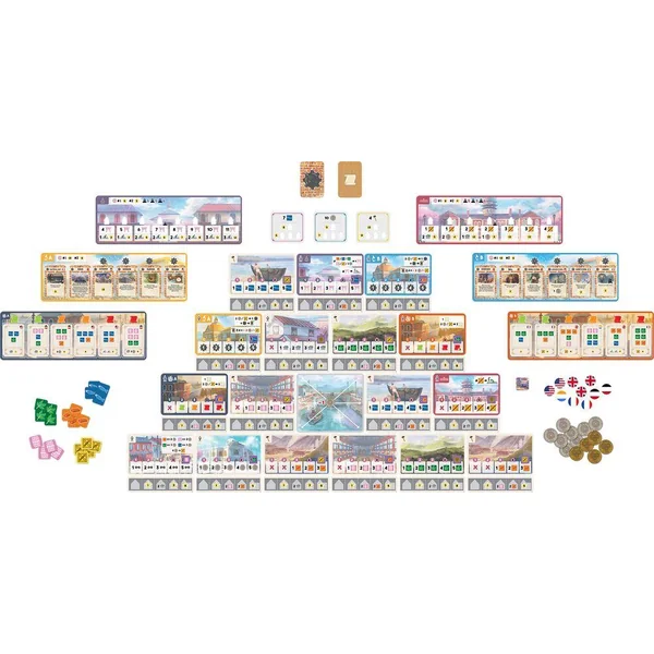 En ce début d’ère Meiji, le Japon a rétabli des relations commerciales avec l’Occident. Yokohama, un paisible village de pêcheurs, est devenu le principal carrefour commercial du pays. Des produits tels que le cuivre et la soie écrue découlent rapidement de Yokohama, tandis que de nouvelles technologies et cultures s’y installent petit à petit. La modernisation commence à prendre racine au Japon et ce sont les marchands de Yokohama qui en sont le fer de lance. Dans Yokohama, les joueurs incarnent des marchands rivaux qui cherchent à gagner en renommée grâce à la réussite de leurs projets commerciaux, tels que la collecte de marchandises, l’apprentissage de nouvelles technologies et le développement des magasins et maisons de commerce de la ville. Pour trouver de nouvelles affaires, les joueurs devront parcourir les rues de Yokohama à la recherche de nouveaux projets. Dans Yokohama, les joueurs incarnent des commerçants entreprenants, tous en quête de succès et d’influence au cœur de cet environnement dynamique. En faisant preuve de stratégie et d’ingéniosité, vous parcourrez les rues animées, dirigerez une équipe d’assistants dévoués et bâtirez votre propre empire commercial. Le jeu allie placement d’ouvriers, gestion de ressources et planification minutieuse. Affrontez les autres joueurs dans une course aux objectifs multiples et faites des choix avisés.