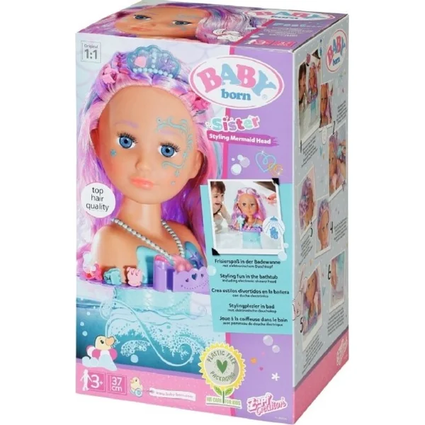 •  Grande sœur BABY born Tête à coiffer Sirène avec douche électronique.