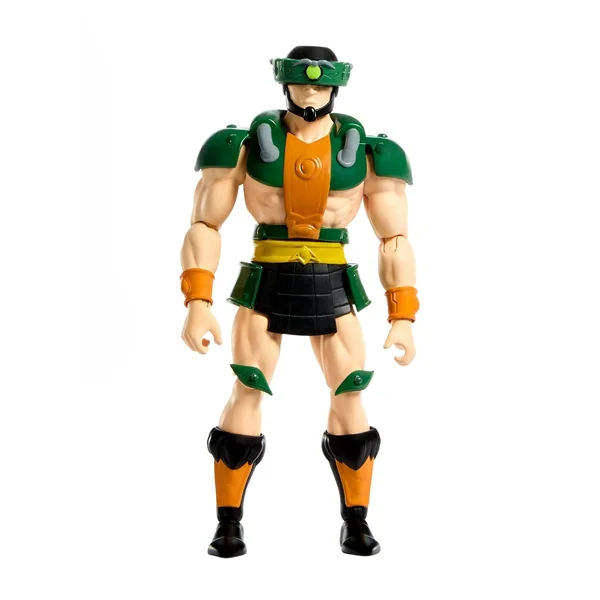Et voici une figurine de Zodac, un personnage ambigu dans Masters of The Universe. En effet, il a été difficile de le classer au début… mais ce guerrier finalement rejoint les « puissances du bien ». Et on le considère plutôt comme un allié de He-Man (Musclor). Un personnage qui est tout en muscles et porte un casque. La figurine le propose avec une armure …rouge et une arme de la même couleur.